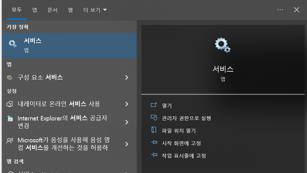 서비스 등록까지 완료가 되었다면 서비스를 실행한다.