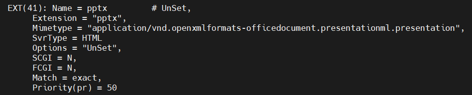 **pptx MimeType = "application/vnd.openxmlformats-officedocument.presentationml.presentation", SvrType = HTML, Options = "unset"**