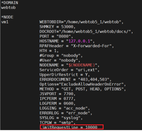 Default로 WebtoB에서 RequestLine은 8190으로 제한하고 있다.
