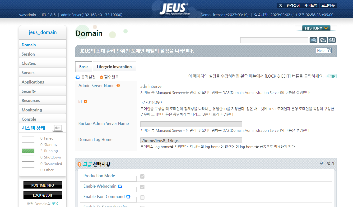 Domain Log Home 경로 변경 시 DAS 및 MS Container 모두 재기동 필요