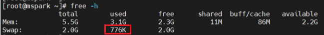 현재 사용 가능한 메모리(Mem)는 2.3G지만 Swap Memory가 776K 쓰고 있는 걸 확인할 수 있다.